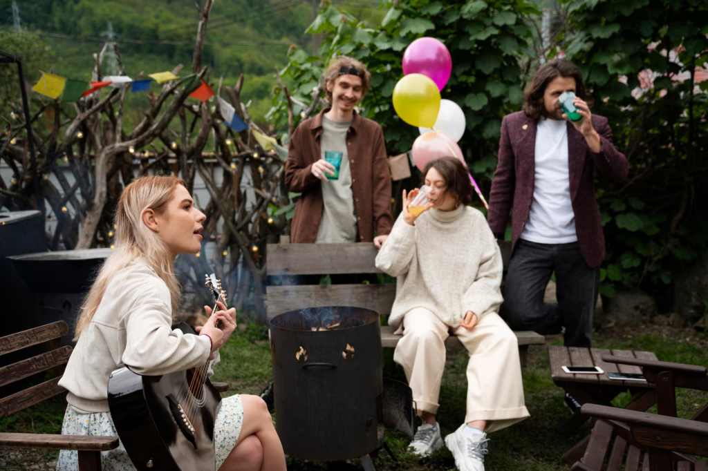 Entertainment writes itself outdoors. Portable speakers handle music (check local noise regulations first), while lawn games or open space for movement work better than forced activities. People entertain themselves naturally when not confined to chairs.